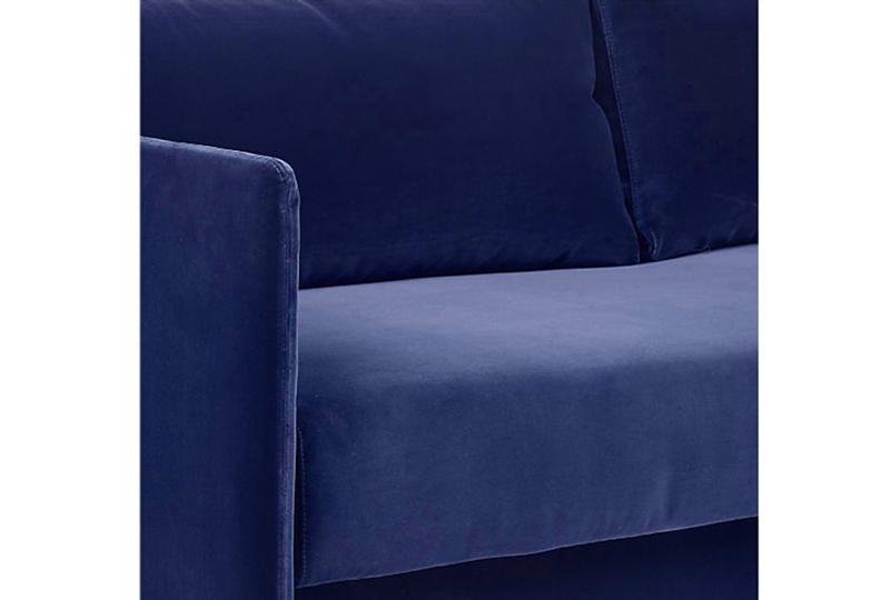 The armrest and sofa feet of YC004 metal frame fabric sleeper sofa is one piece structure made of steel tube, so that it is simple and solid. The seat cushion of the sofa can be pulled out from the front. And then drag out the two hidden sofa feet under the cushion and lay flat the backrest of the sofa to the front, thus creating a bed.