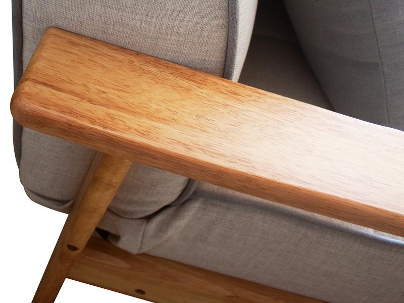 The YC011 wood frame sleeper sofa is equipped with two solid wood armrest. The fabric adopts linen and the surface of the sofa adopts European pull buckle concave and convex shapes. There are two hidden feet behind the backrest which can be dragged out for supporting when the backrest is laid flat to the back, thus forming a bed.
