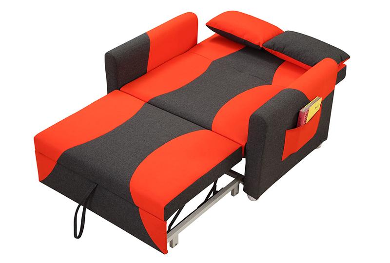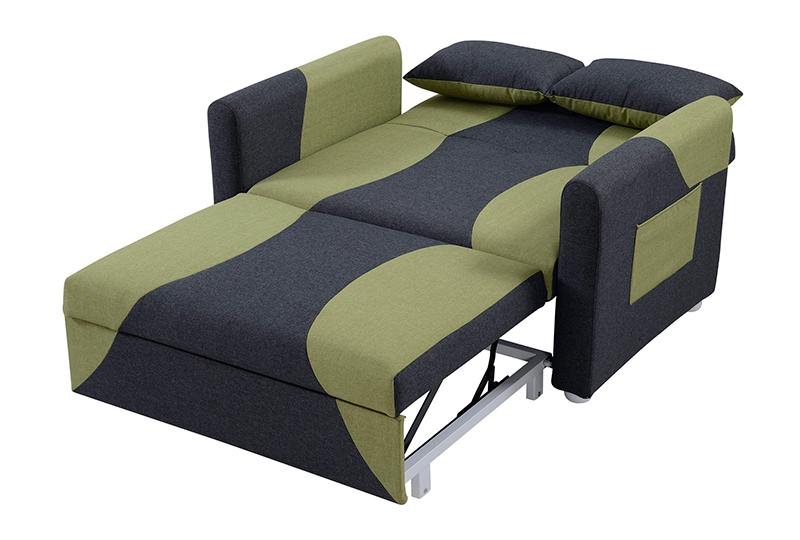 The AD153 2-seater pull out sofa bed adopts steel and wood frame. Under the state of sofa, pull out and lift the bottom frame under the 2-seat sofa then it can be transformed into a chaise longue. Meanwhile, if the backrest of the sofa is further laid flat, the sofa can be transformed into a bed. This sofa features small size but it can be turned into a relatively big bed. There are many kind of optional fabrics and colors. You can also choose the specifications: 1.5m or 1.7m width. It can also be customized according to the requirements.