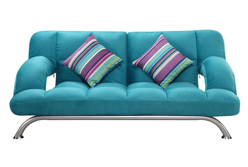 The AD017 metal frame fabric sofa bed adopts total metal frame, the soft fabric and accessories of the sofa and be easily separated from the frame. The frame is integrated while the armrest and backrest frame is movable. Pull backward the backrest of the sofa, and the armrest will be laid flat by the function of the linkage, thus getting a flat bed.