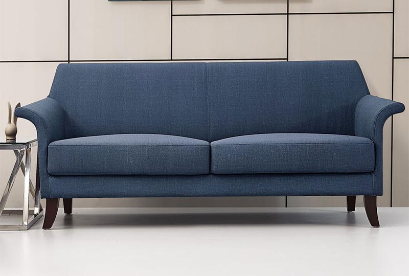 The S360 office reception wood frame sofa set adopts solid wood internal frame, solid wood feet, dusty blue woven leather and curved armrest. It can be used for commercial office, reception room or domestic use. It has three specifications: one-seat, 2-seat and 3-seat.