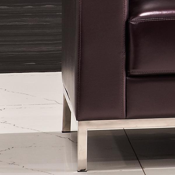 The S325 executive office leather sofa has square appearance, silver metal bottom frame with feet, dark purple pearly leather and movable seat cushion and back cushion with pull buckles on the surface which can show luxury and elegant. It has three specifications: one-seat, 2-seat and 3-seat.