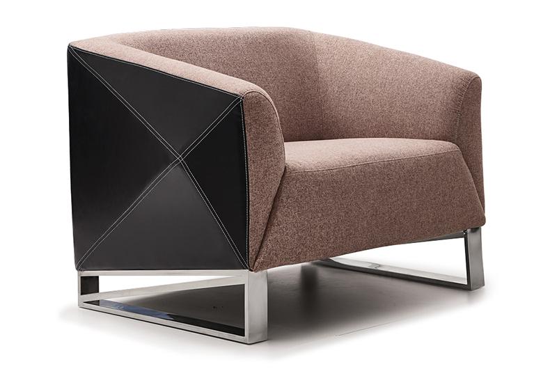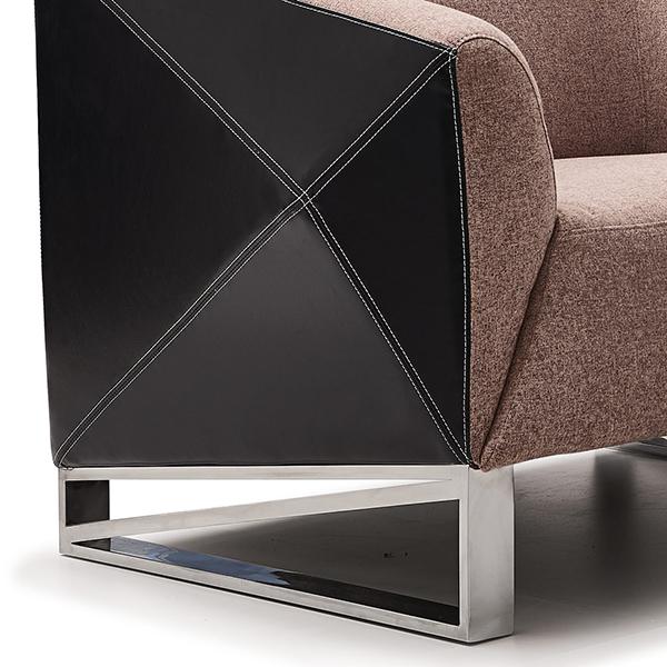 The S339 modern fabric and leather sofa set adopts combination of black leather and light brown cloth. The side of the armrest has prominent angles which is quite unique and novel. It also has sofa feet with metal frame and solid wood internal frame. It has three specifications: one-seat, 2-seat and 3-seat.
