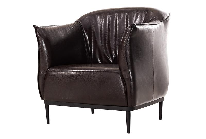 The antique S296 brown leather office couch adopts dark brown imitation soft leather, black and delicate metal frame and feet, wood internal frame, especially made back cushion with obvious wrinkles and thin armrest which is prominent like a sharp angle. It has three optional specifications.