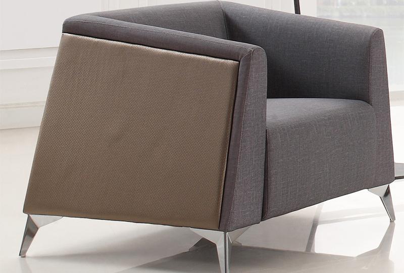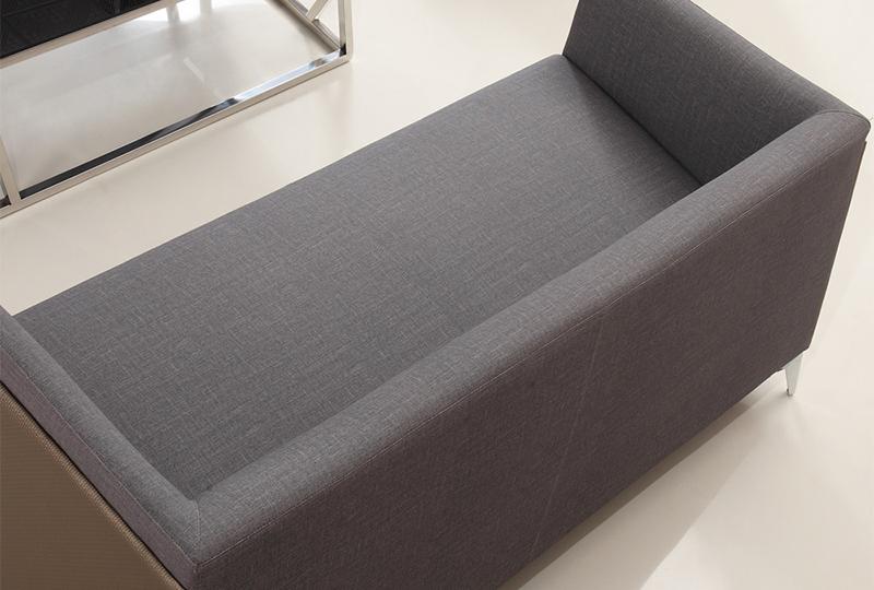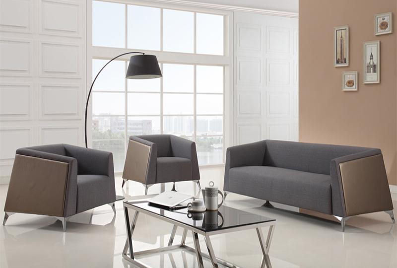 The S342 modern office couch set is a sofa adopts combination of leather and fabric which is fashionable and dynamic. It adopts delicate metal feet, wood internal frame. For fabric, the outer side of the sofa adopts golden leather while the side which contact with human body directly adopts gray cotton and linen. This couch set has three specifications: one-seat, 2-seat and 3-seat.
